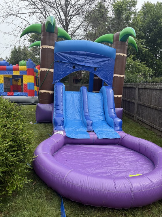 Turn your backyard into a tropical paradise with the Tropical Splash Castle! This vibrant dual-lane combo features a large bounce area, built-in basketball hoop, and dual-lane slide with a splash pool landing — perfect for wet or dry use. It’s the ultimate choice for summer fun, school events, and backyard parties!